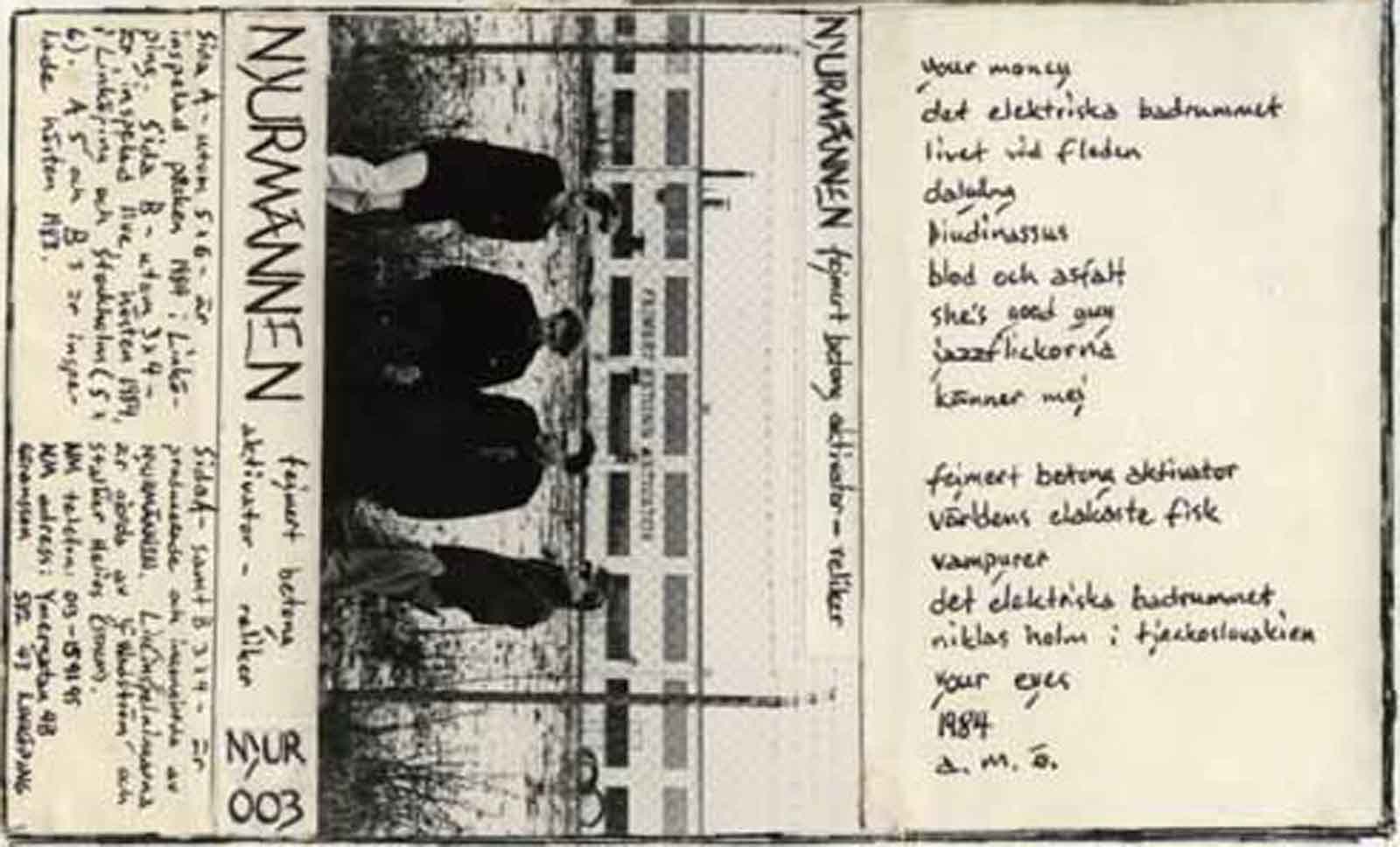 ASESORADA POR JOSEP INICIO MIS ANDANZAS COMO BLOGGERA EN ESTE TEMPLO DE LA MUSICA ELECTRONICA EXPERIMENTAL. OS PRESENTO ESTA CASSETTE DE NJURMÄNNEN TITULADA FEJMERT BETONG AKTIVATOR-RELIKER Y QUE APARECIO EN 1985 A TRAVES DEL SELLO DEL PROPIO GRUPO SUECO. COMO YA SABEIS ESTE GRUPO ME ENCANTA Y GRACIAS AL MATERIAL DESCARGADO POR JOSEP ESTOY REUNIENDO UNA INTERESANTE CANTIDAD DE MATERIAL QUE ENTRE EL Y YO IREMOS COMPARTIENDO CON VOSOTROS. ESPERO QUE OS GUSTE Y COMO DICE JOSEP "DISFRUTAD..."