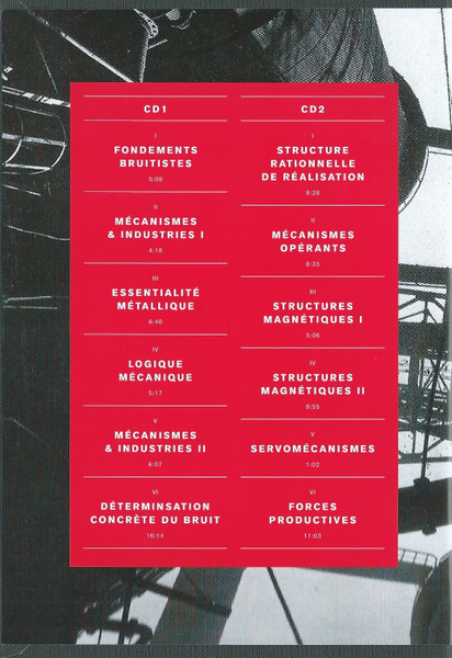 Dos CD's presentados dentro de lo que aparentemente es un libro de 108 páginas en francés, inglés y japonés y con magníficas imágenes de escenas industriales así como de Luigi Russolo y sus ingenios. Tapas duras, presentación ultralujosa y un tracklist espectacular que selecciona varias sesiones de VIVENZA de 1984 incluyendo temas inéditos. Además, lo he ripeado en FLAC para que no os perdáis detalle.